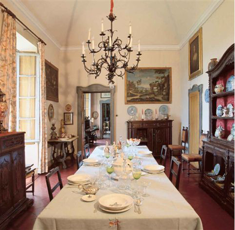 Degna d’attenzione è la ricca collezione di ceramiche esposte in sala da pranzo, dove nella credenza, sono visibili porcellane di diversa manifattura: Antica Savona, Vecchia Lodi, Giapponesi; mentre sul buffet settecentesco poggia una pregevole porcellana Maissen (Lezione di Piano) e due vasi della porcellana di Sèvres. E per chi ma il biliardo, ci sono un bellissimo tavolo con l’originale segnapunti del 1600 e stecche di tutte le dimensioni.