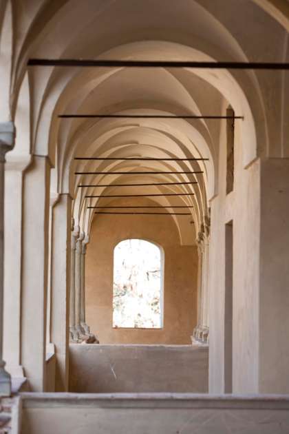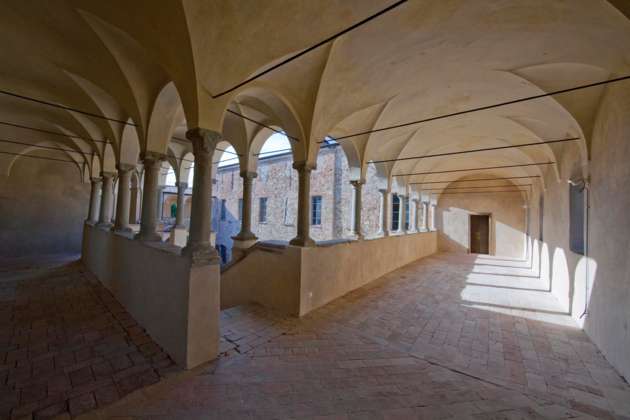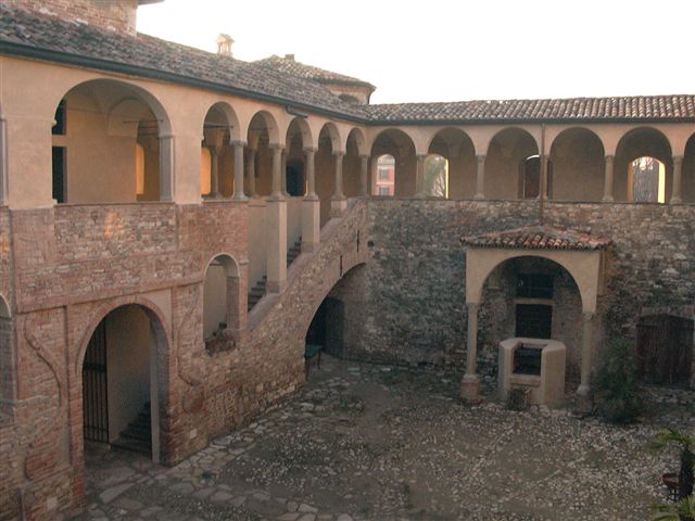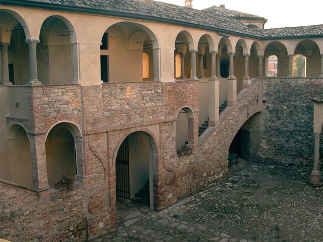 Quando sarete nel cortile rimarrete affascinati dalla magnificenza del loggiato cinquecentesco, voluto da Luigia Gonzaga, e raggiungibile tramite un doppio scalone. La tipologia di questa loggia costituisce un unicum, almeno per Piacenza e il piacentino; se sarete dei buoni osservatori non vi sfuggirà l’ampia scalinata che dal suolo sembra essere inghiottita nelle tenebre: era l’accesso a un passaggio sotterraneo che premetteva di arrivare, anche a cavallo, fino al Castello di Lisignano (che si trova a Gazzola).